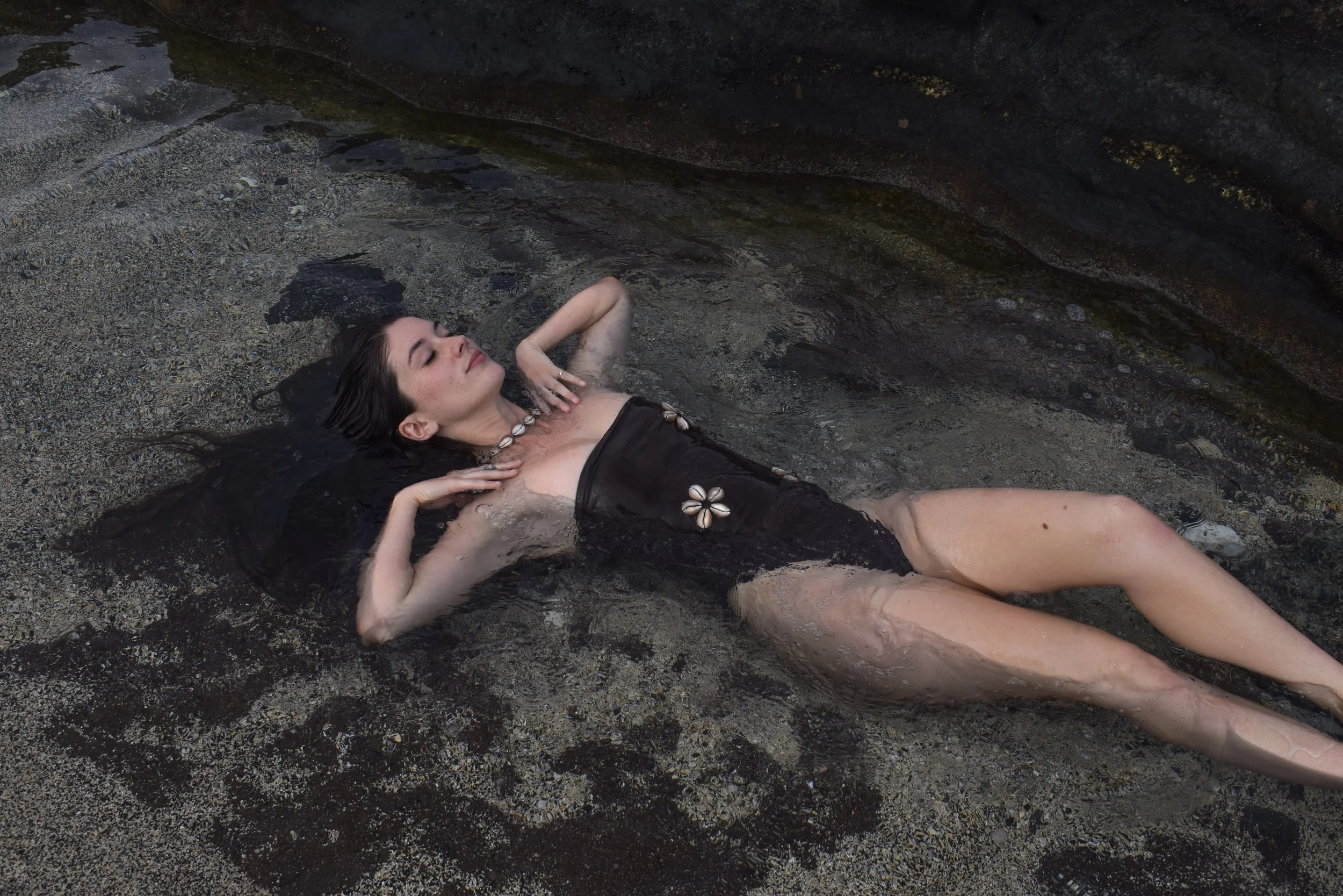 Island Swim incorporates handpicked shells found while free-diving and walking along the shores of Hawai’i; Creating their unique and signature style which symbolizes a merge between fashion and culture.